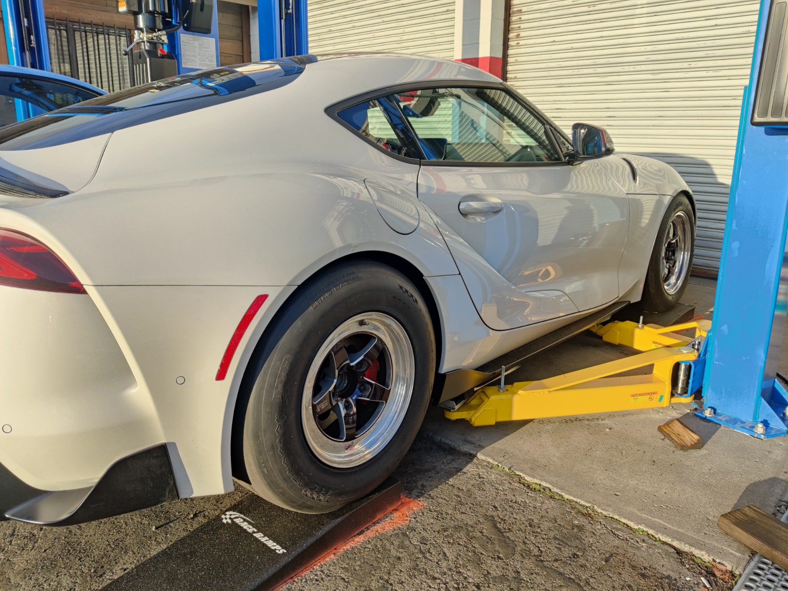 Looking to make your A90/91 Supra faster in the 1/4 mile or 1/2 mile racing? Want to run 17″, or 15″ wheels with a very minor suspension modification? Want to drop 35lbs of unsprung weight off the Rear of the car at the same time? Do not want to break the bank while doing so? Look no further than the VTT “GC” Rear Drag kit for the A90/91 Toyota Supra. This kit will allow you to run the wheel/tire combo you need to drop your ET’s all while putting the car on a significant diet over the stock rear brake set up.