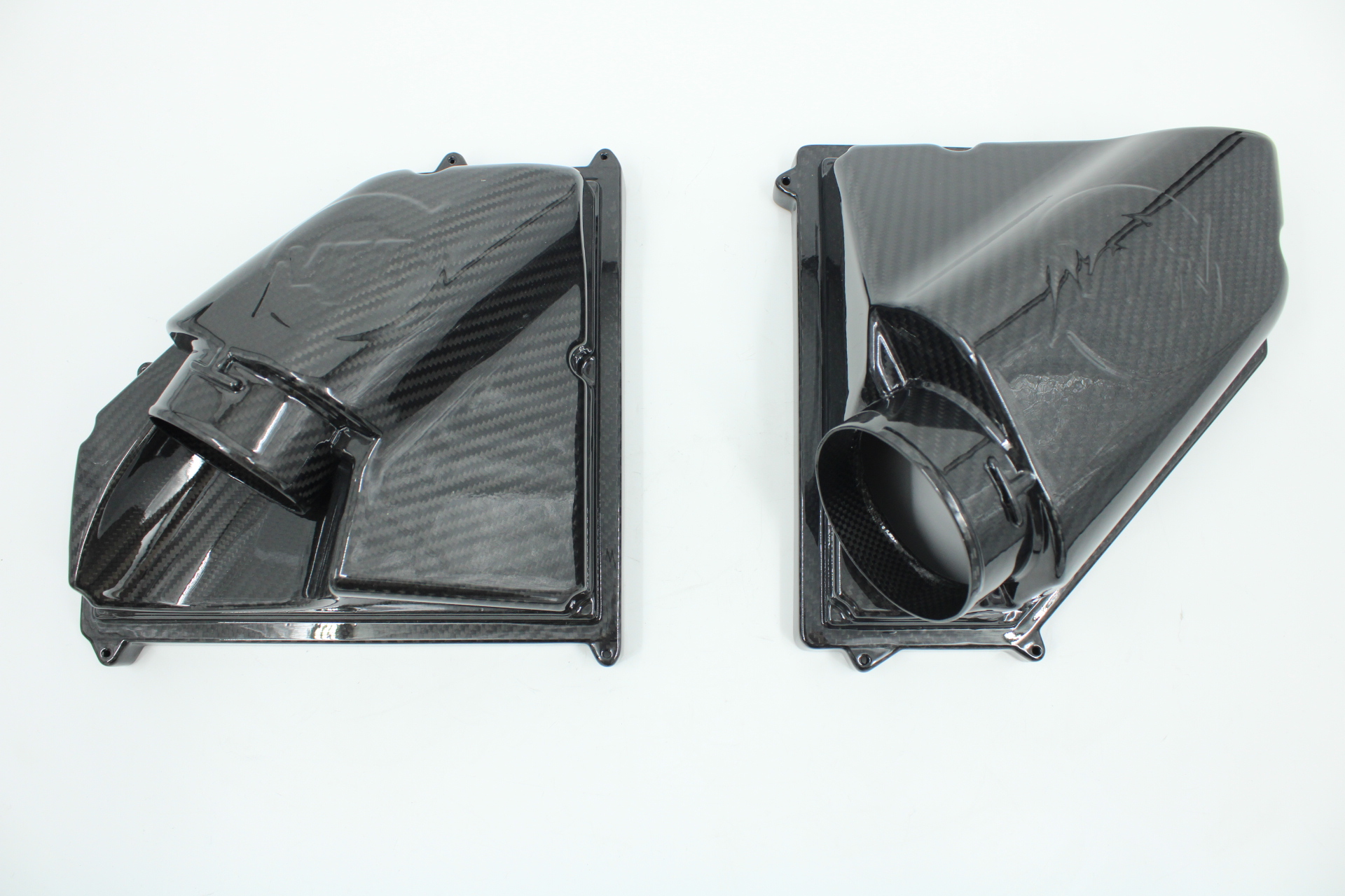 VTT is proud to announce the first of our upcoming carbon fiber product line. The BMW S58 G8X M3/4 Carbon fiber intakes! BMW did a wonderful job designing these intakes and we have found they are only slightly restrictive at elevated power levels, mostly due to the secondary filter inside, and the factory paper filter. Beware of companies selling expensive intake systems, or cone set up, with a single dyno comparison claiming big gains. The factory setup is EXTREMELY efficient with only a couple of small changes. With this in mind, we decided to just take their cues, and make factory-style carbon fiber intake tops with no secondary filters, and high flow cotton pre-oiled filters. These are 8 layers of 100% carbon not a single layer wrapped over plastic and they are 1.3MM thick with our logo vacuum printed onto the tops, with a UV resistant gloss clear coating. This is not only strong but will resist discoloration for an extended period of time. The filters themselves are made with a heat-resistant silicone base, a high-flowing cotton weave element with a pre-oiled design to catch contaminates but allow free flow.