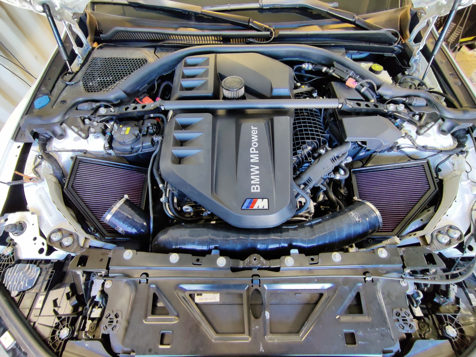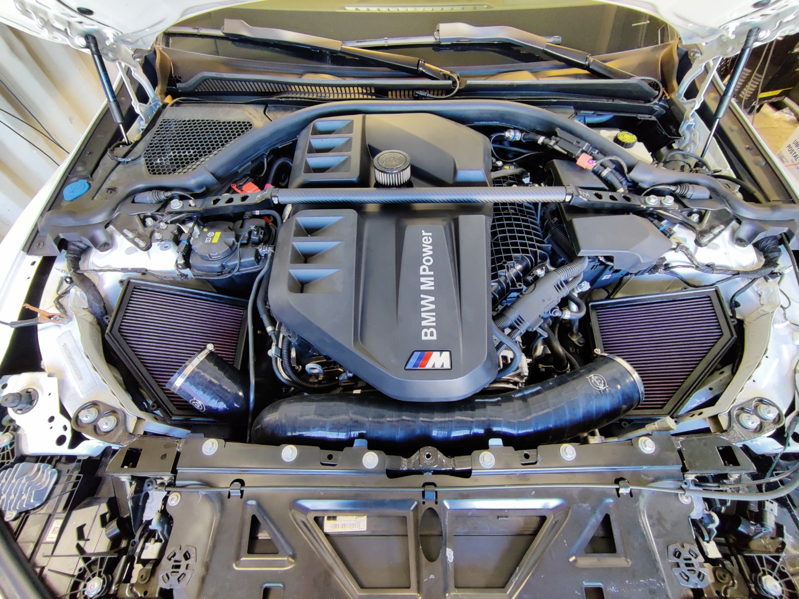- Beautiful Carbon Fiber finish really adds class to the S58 engine bay