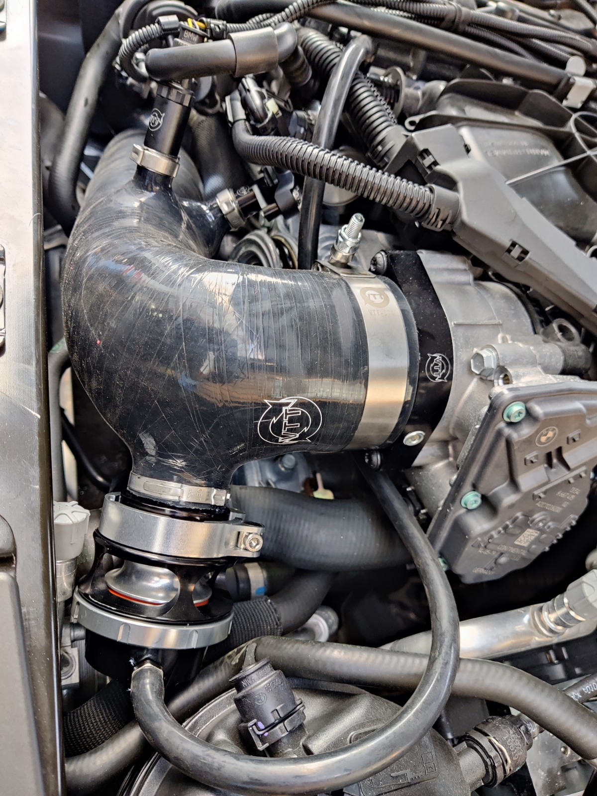 VTT is proud to offer the very best BOV charge pipe solution for the Toyota A90/91 Supra platforms. This system completely does away with the restrictive, and muli-connection stock charge pipe system, and replaces it with a single 6-ply, Heat Resistant, Wire reinforced silicone charge pipes rated at over 200 psi. They are molded for the perfect fit in your engine bay, while not sacrificing anything in the way of flow or size. They also completely isolate your charge air from any additional heat soak coming in from the engine or ambient heat. Another huge benefit is your vehicle goes from 4 connections to only TWO which are barbed and has many small ridges which dig into the silicone so it’s impossible for the pipe to blow off. This means no more blown charge pipe connections on the track or road leaving you stranded.