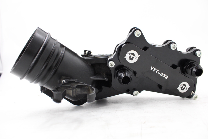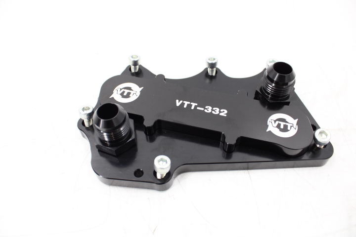 That’s where the VTT Remote Oil Cooler Plate comes in. This innovative solution allows you to easily and conveniently remove the factory coolant-supplied heat exchanger on the oil filter housing and replace it with -10AN or -8AN fittings, simplifying the process of running your oil cooler lines. No need to worry about looping the coolant—our plate features a built-in housing that seamlessly loops the coolant circuit for a hassle-free installation.