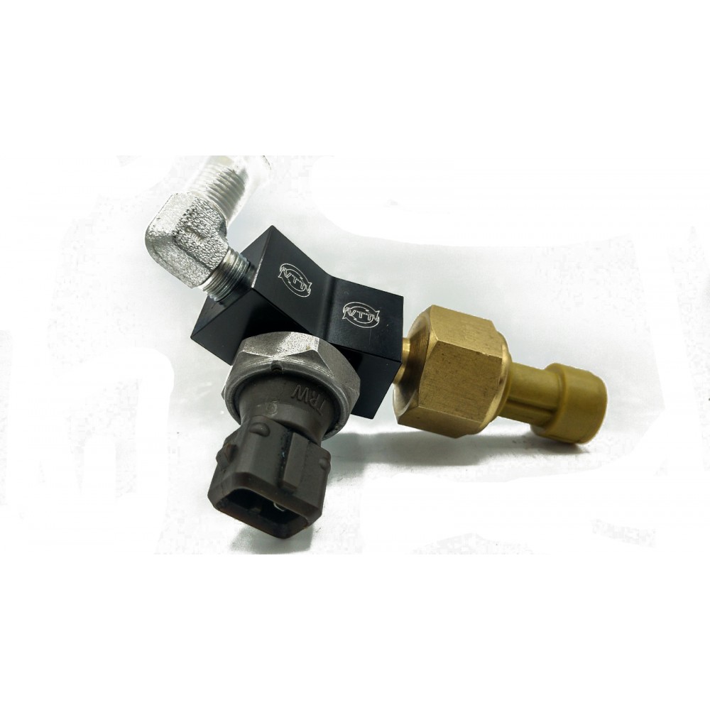 - Complete kit with 24″ hose (One 45, One straight), One 24″ harness, Billet CNC Adapter fitting,Ā M12 to -4AN fitting,1/8NPT to -4AN 90, AEM 0-100PSIG Pressure sender, AEM 3 wire connector, M8 Mounting bolt, and nut