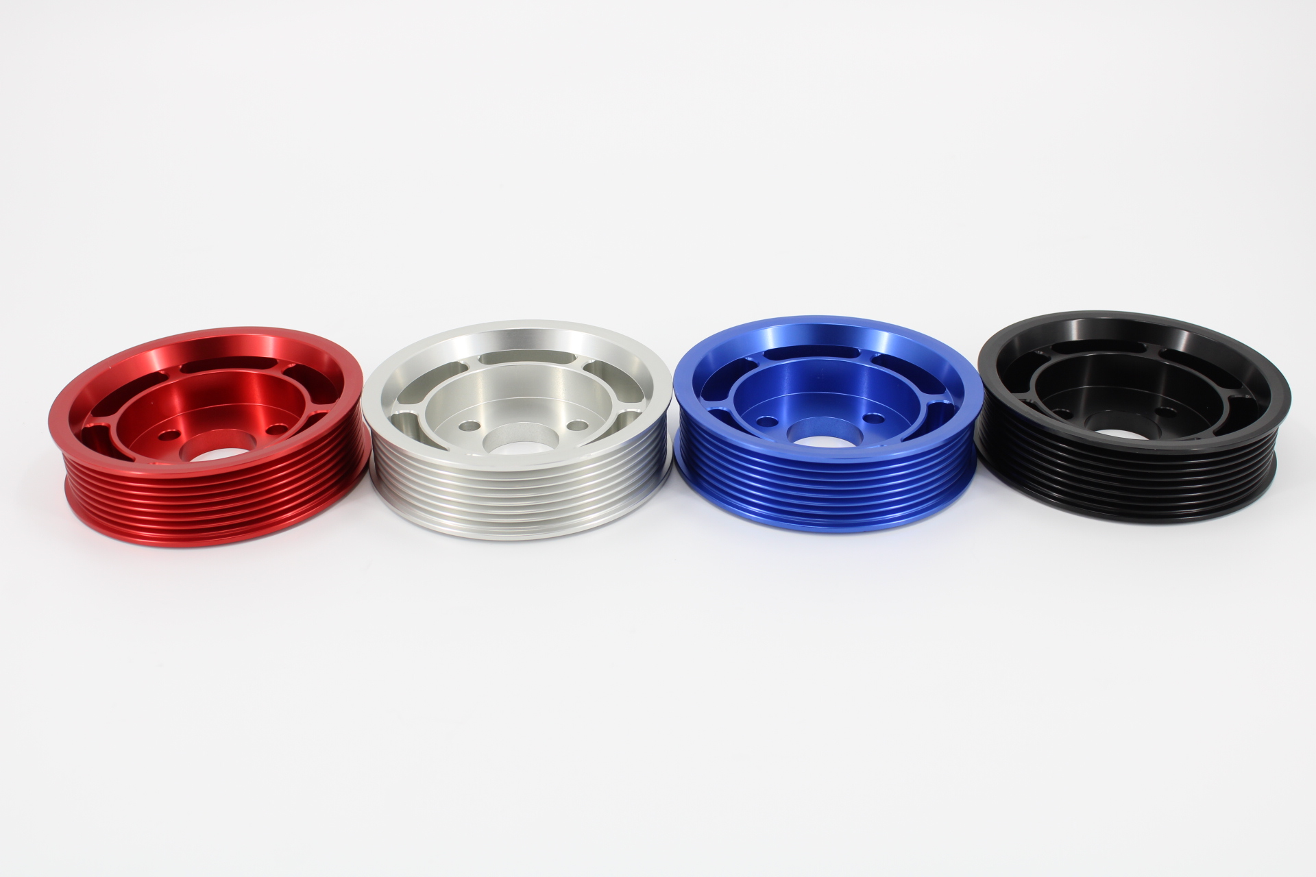 These weigh 11Oz, very close to the weight of a stock pulley, and are lighter than the cast aluminum versions on the market.
