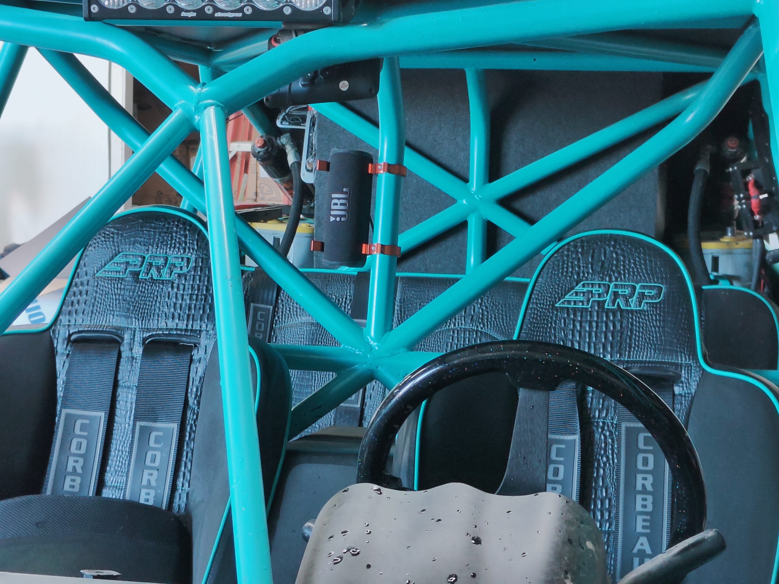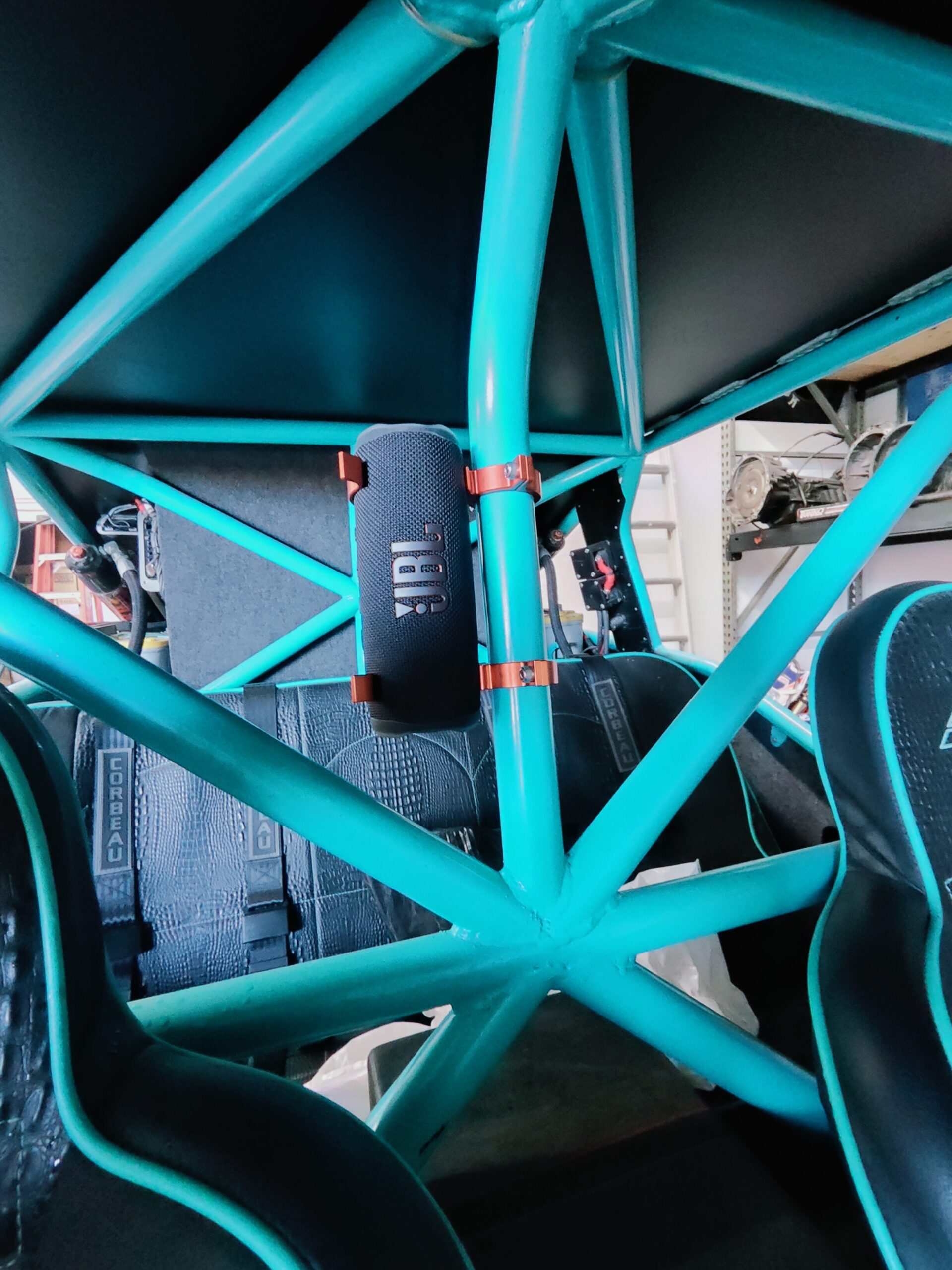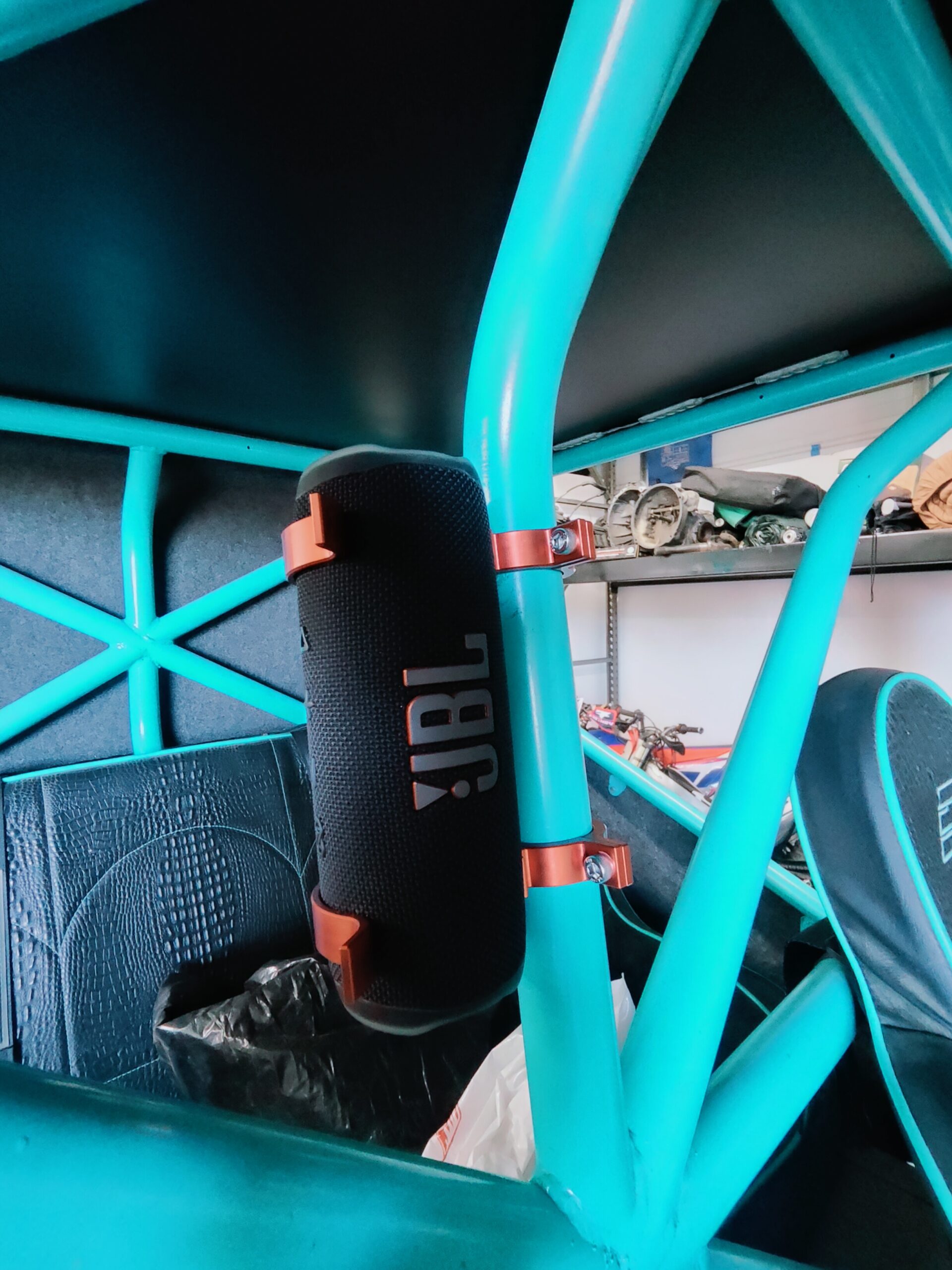 VTT is happy to offer our very unique and universal billet mount to fit any roll bar or cage with 1.5″, 1.75″, or 2″ diameter tubing. These mounts are designed from 6061-T6 aluminum and are made to SECURELY hold a JBL Flip version 3 – Version 6 and allows you to bring music into your race car, off-road vehicle, rock crawler, boat, basically anything that has a length of tubing this will allow you to have an easy way to have tunes without having to install and mount a stereo system.