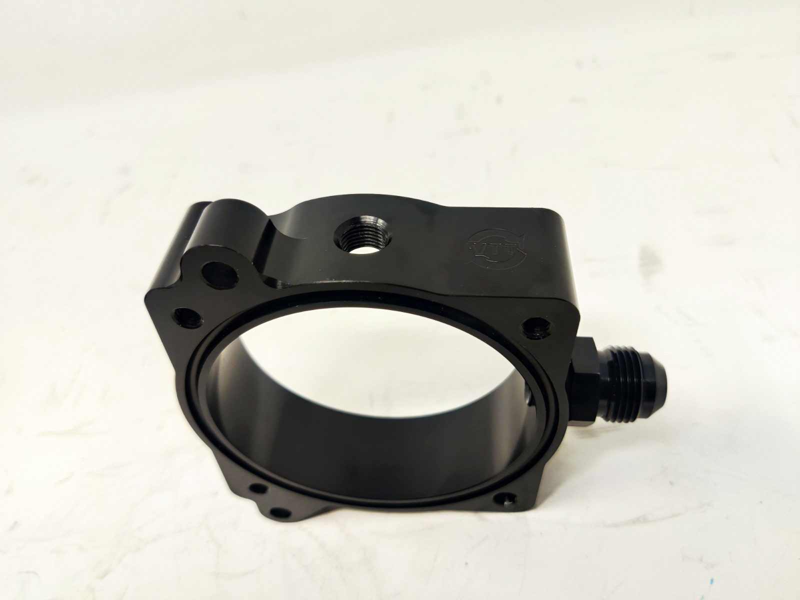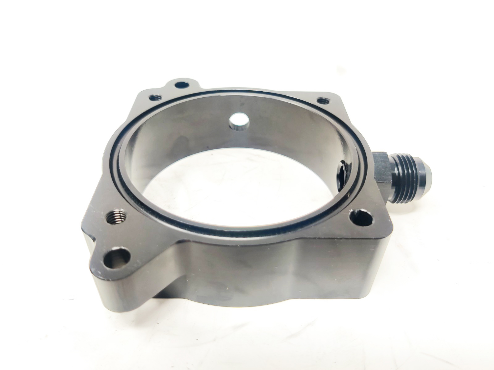 The spacer has one -6AN port, and one 1/8NPT port for various uses, Boost reference, methanol injection, etc