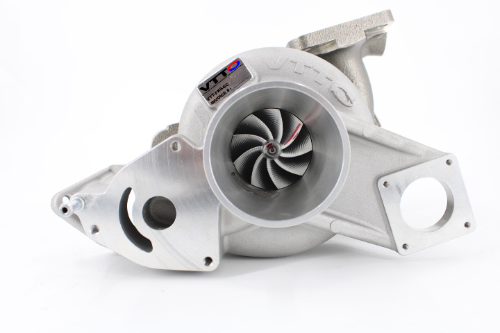 Ready to take your FK8 CTR to the next level? Don’t want to deal with core charges, long lead times, or restrictive factory housings? Look no further! VTT has you covered with our 100% new casting “GC” turbocharger upgrade. We start by keeping the great design elements of the factory 2L turbo and removing the not-so-great ones such as the small factory inlet area, bearing housing oil structure, thrust bearing, and anything else we saw that could be improved upon. This is not your basic TD04 CHRA. We completely changed the bearing structure to an 8mm turbine shaft, and journal bearing making it larger than anything in the TD04 MHI family, this truly is a custom unit. We also increased the thrust assembly dramatically to deal with the increased thrust loads. With the basics covered, we stepped it up a level by adding proprietary VTT changes to the housings, A/R Ratios and finished off by having all these parts cast to OE quality. What this means for you is serious 2.0L power made easy; GCs are a drop in turbocharger upgrade that supports up to 550WHP while maintaining very fast spool and all factory connections including oil, water, downpipe, and charge pipe. This turbo is perfect for the FK8 owner looking to max out the factory fuel system and make their CTR more fun to drive with power to redline, as well as the customer looking to add a fuel system and push towards the 550+WHP range. This truly is the unit for everyone. We said the same with our 1.5L SI offering, and have delivered on every promise, due to our no-compromise approach to the upgrade.
