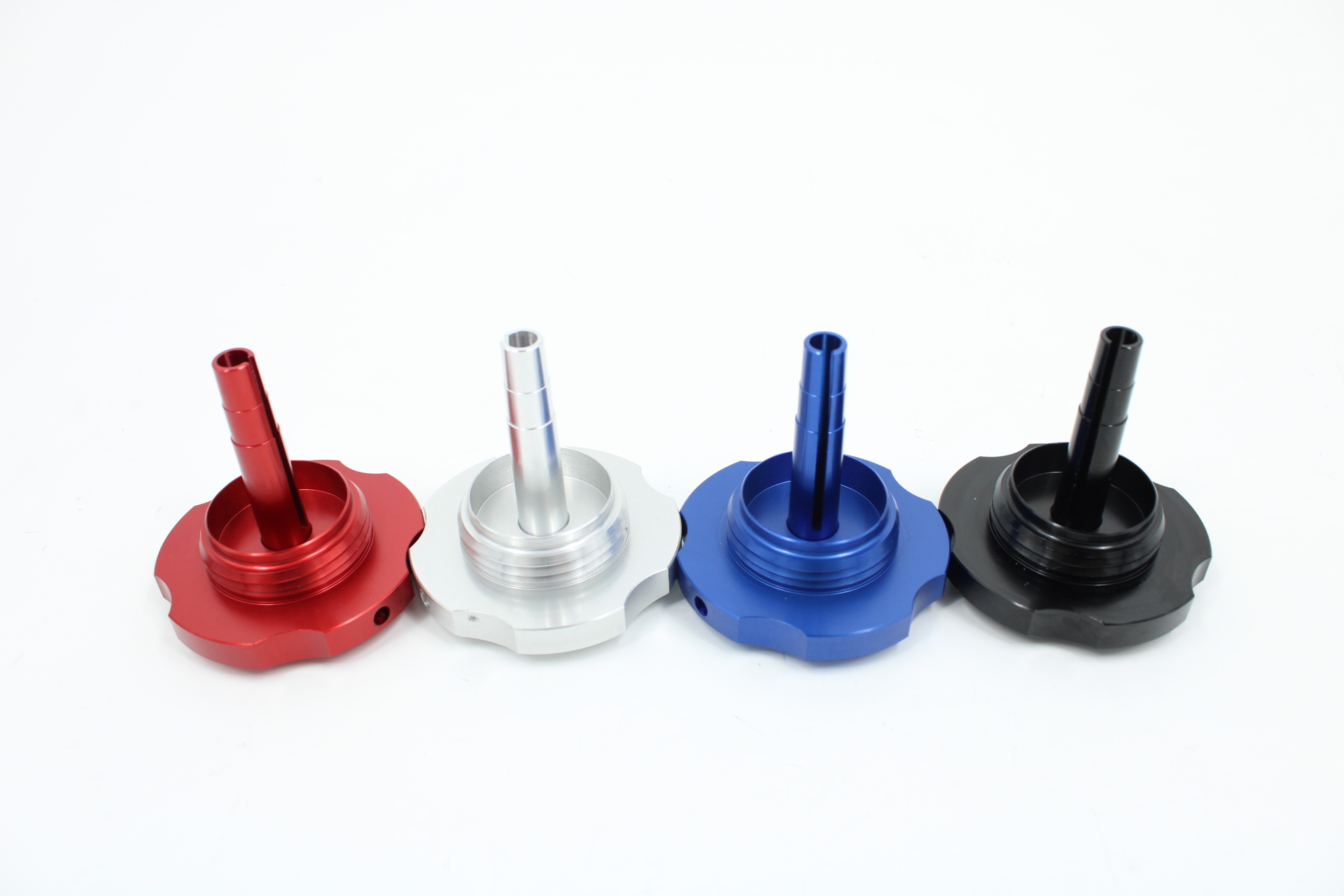 We offer these caps in 4 colors – Red, Black, Blue, and Clear anodize, as well as a choice of custom anodize at a cost of $100 extra.