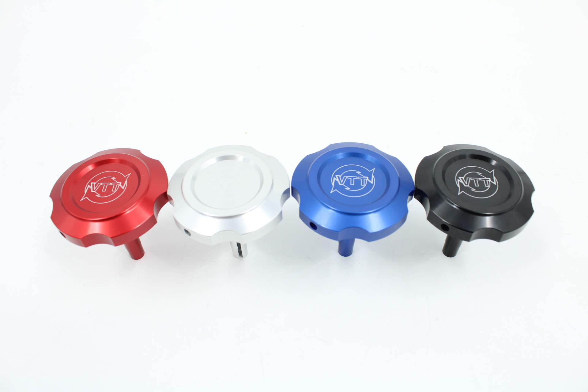 VTT is proud to offer our billet replacement for the factory plastic Power steering cap. This cap does away with the weak plastic cap, while adding some pop, and color to your engine bay. These Power Steering caps retain ALL of the factory provisions including dipstick, and vent hole